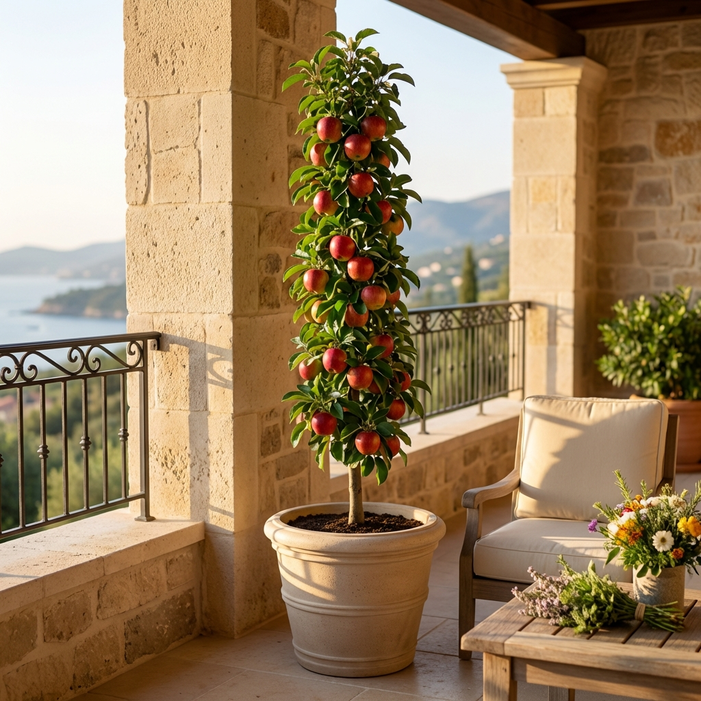 Los árboles frutales en forma de columna son ideales para embellecer pequeños espacios exteriores o jardines compactos. También se pueden plantar en terrazas o balcones. Son poco voluminosos y tienen un aspecto elegante y refinado.